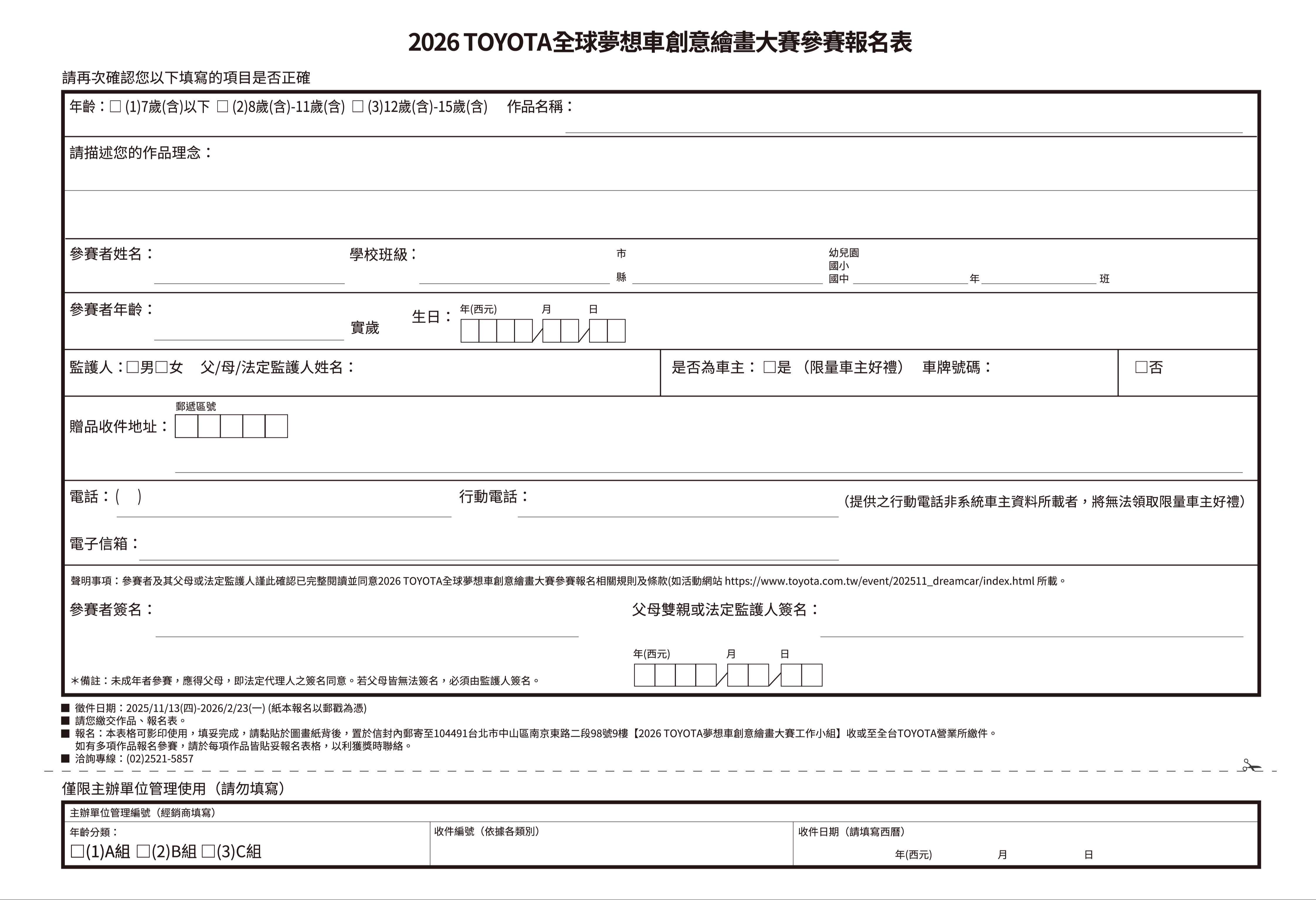 2026 TOYOTA全球夢想車 創意繪畫大賽