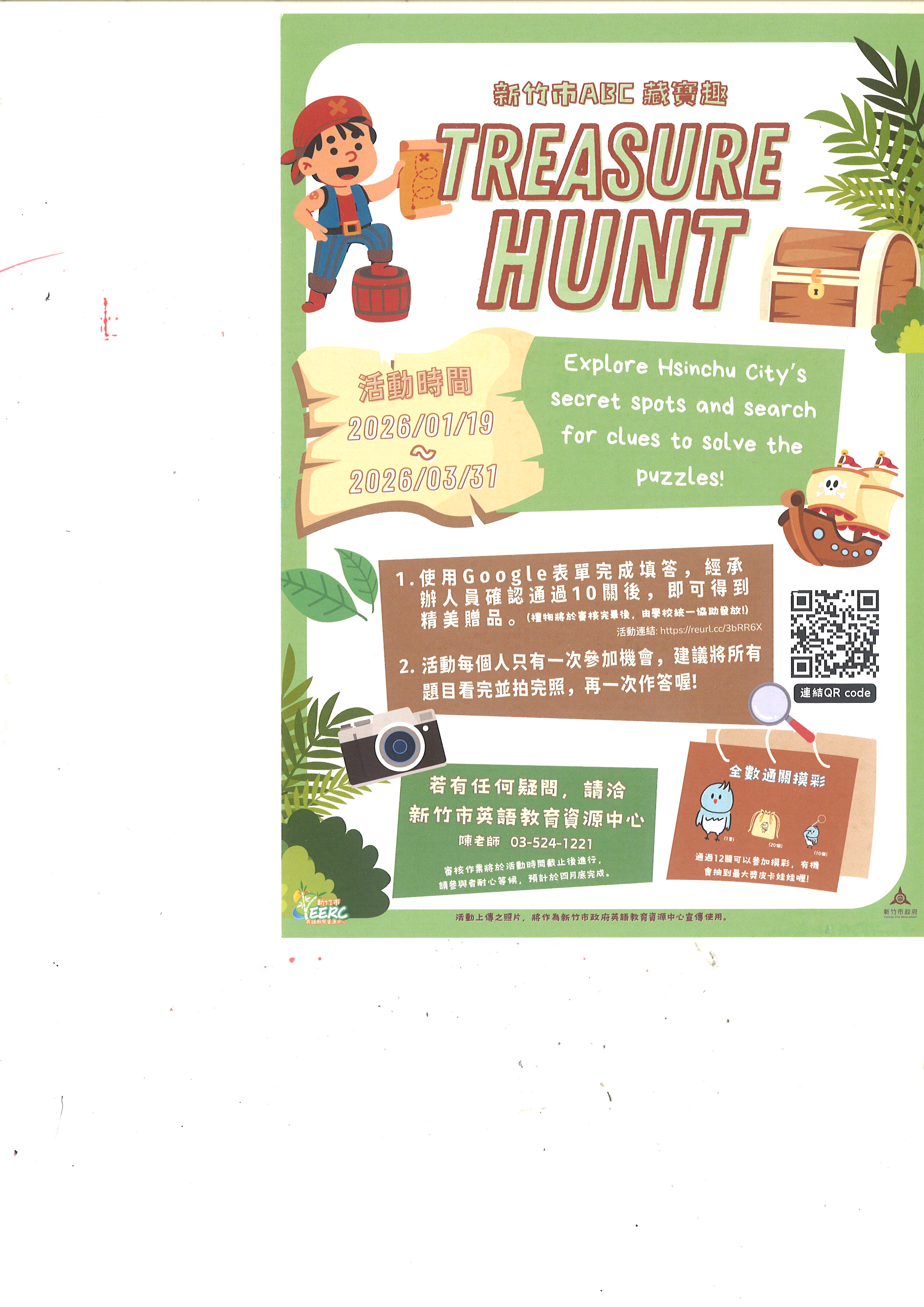 | 二、 | 為提供本市中小學生從生活中尋找生活化英語的機會,認 識新竹在地特色,透過闖關提升本市學生英語力。 |