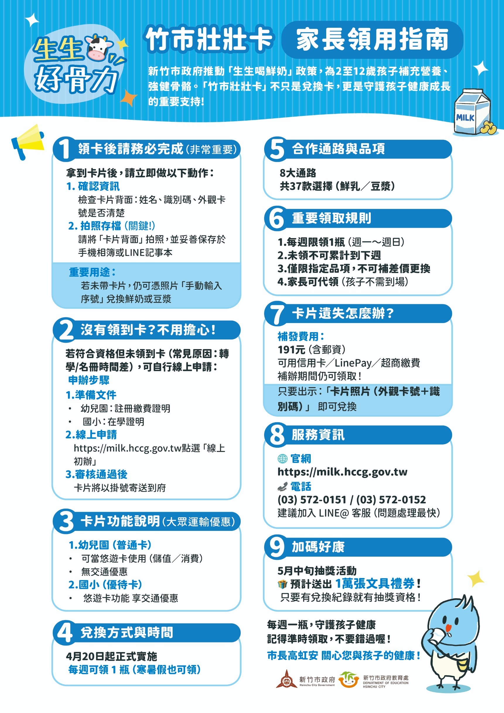 本校今日發放「竹市壯壯卡」,相關使用辦法請家長詳閱生生好骨力行銷網站(https://milk.hccg.gov.tw/module/ticket-welcome-hc/module/ticket-welcome-hc/ap/mayor)。